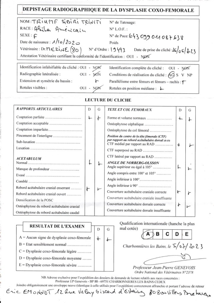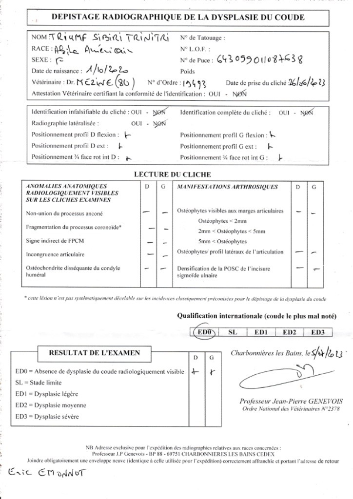 ADN : Porteuse amélogènése imparfaite et porteuse Poil Long Coudes : ED0 Hanches : HDA |